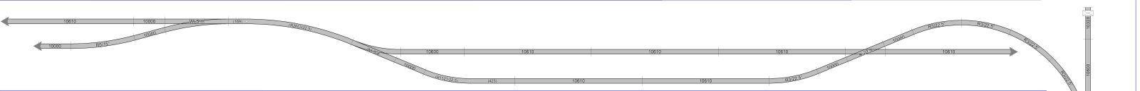 Gesamtlänge jeder Baugruppe 10,80 m Gesamtbreite 0,9 m Gesamtmaß in L-Form: 10,8 m x 11,7 m oder in gerader Form 21,6 x 0,9 m Gleisniveau 1 m Gesamthöhe ca. 1,65 m |