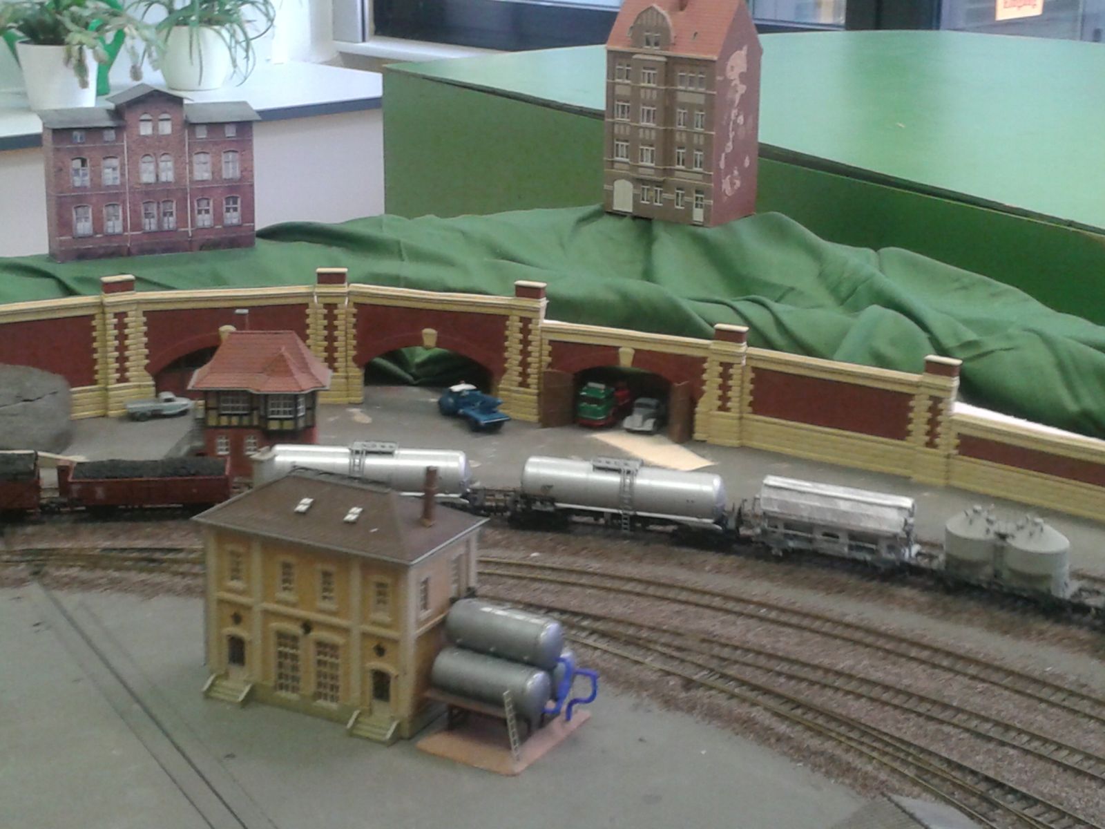 Industriegebiet, im Hintergrund die Fabrik (Idsteiner Modellbahntage 2015) |