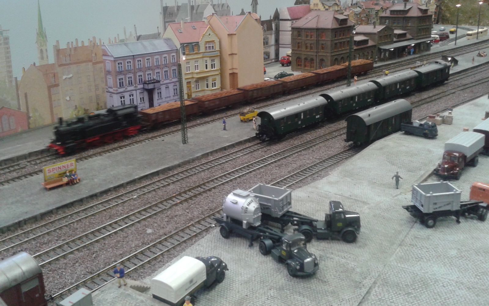 Güterbahnhof mit Blick auf die Altstadt. (Idsteiner Modellbahntage 2015) |