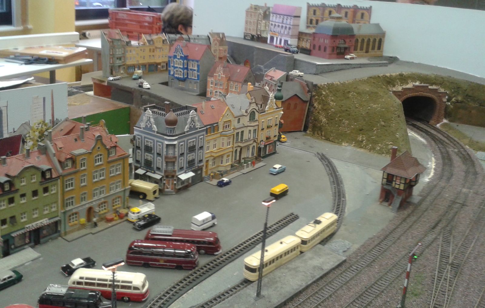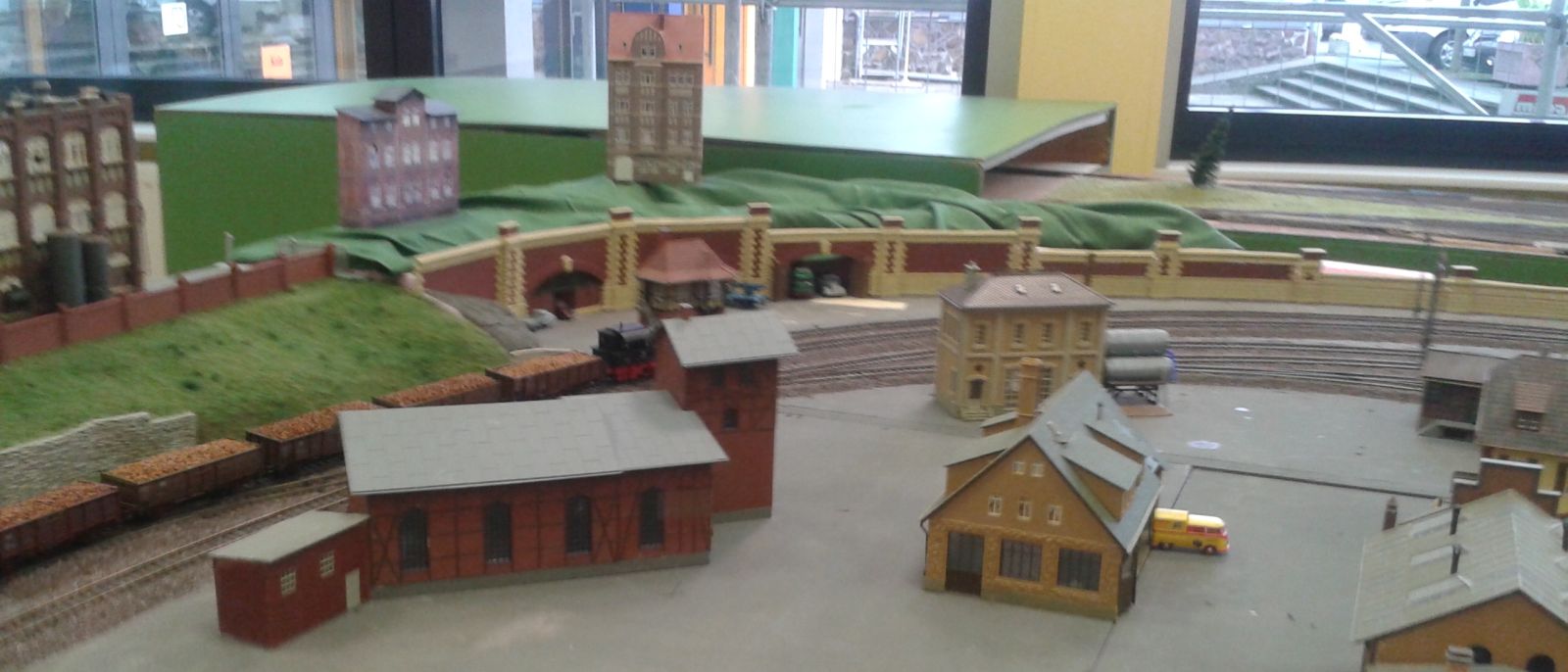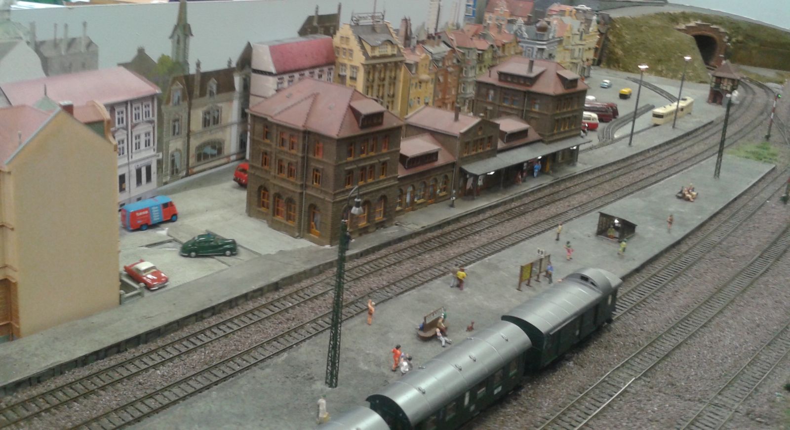 Östlicher Bahnhofskopf und Bahnhofsvorplatz (Idsteiner Modellbahntage 2015) |