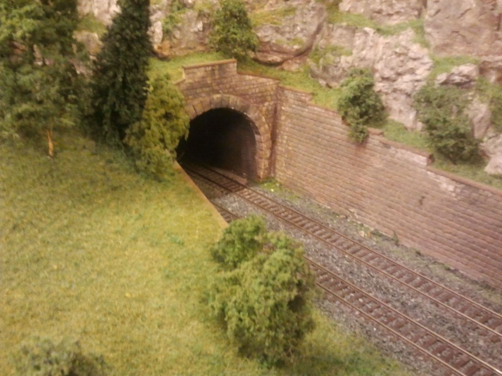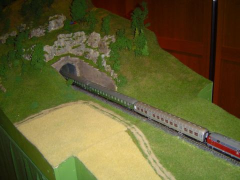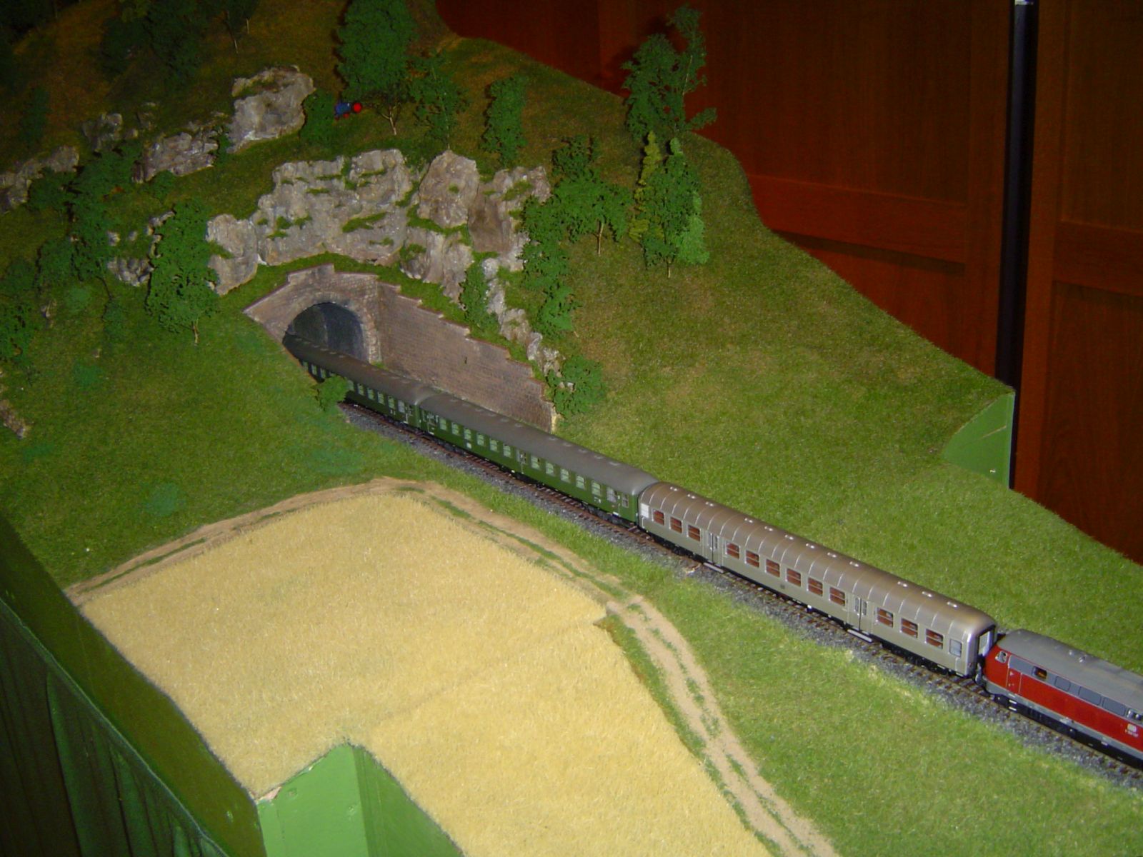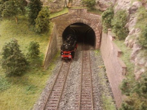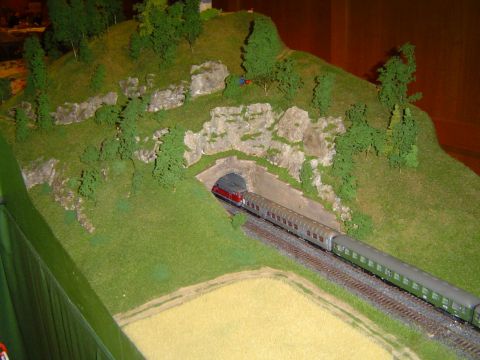 Einfahrt eines Eilzuges in den Tunnel (Idsteiner Modellbahntage 2004) |
