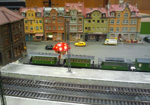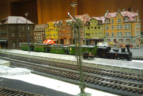 Bahnhofsvorplatz mit Schmalspurbahn (Idsteiner Modellbahntage 2011) |
